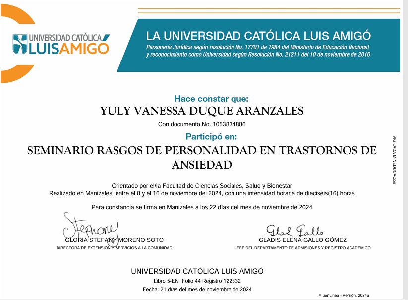 Cuento con experiencia en el acompañamiento de niños, adolescentes, adultos y adultos mayores en temas como ansiedad, depresión, duelos, rupturas amorosas, estrés, violencia intrafamiliar, abuso sexual e intentos de suicidio.